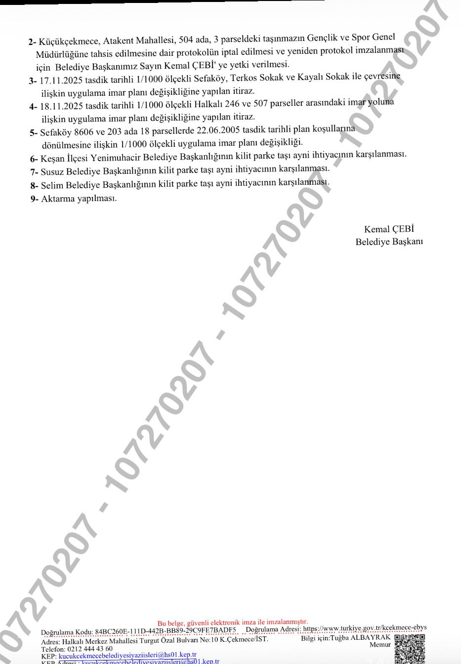 Küçükçekmece Belediye Meclisi’nde alınan kararların ilçeye hayırlı olması temennisinde bulunulurken, 2. Meclis Başkan Vekilliği görevine seçilen Belediye Başkan Yardımcısı Gökhan Aygün’e yeni görevinde başarılar dilendi.