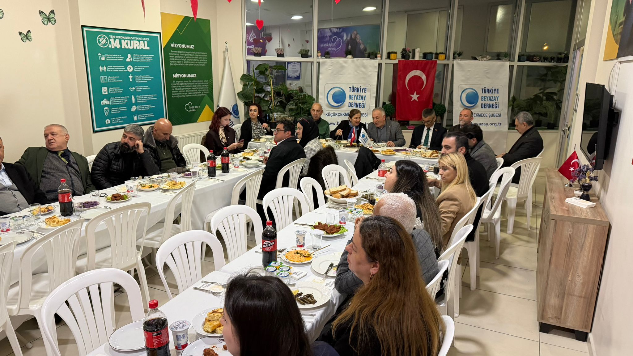 Küçükçekmece’de faaliyet gösteren Türkiye Beyazay Derneği Küçükçekmece Şubesi, özel gereksinimli bireylere yönelik farkındalık oluşturmak amacıyla anlamlı bir organizasyona imza attı. Dün akşam Küçükçekmece Sultan Murat Mahallesi İnönü Caddesi üzerinde bulunan Özel Sevgi Yağmuru Özel Eğitim ve Rehabilitasyon Merkezi’nde düzenlenen yemek programında; dernek yöneticileri, kamu temsilcileri ve davetliler bir araya geldi. Programda samimi bir atmosfer hâkim olurken, katılımcılara Türkiye Beyazay Derneği kadın yöneticilerinin kendi elleriyle hazırladığı yemekler ikram edildi.