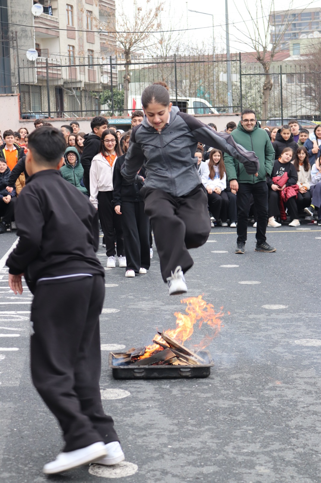 Etkinlik kapsamında Hacivat–Karagöz gösterileri sahnelenirken, öğrenciler tarafından şiirler okundu. Yunus Emre, Mevlana, Nasrettin Hoca, Aşık Veysel ve Mustafa Kemal Atatürk’ün canlandırıldığı gösteriler izleyicilerden büyük beğeni topladı. Ayrıca çuval yarışı ve kaşıkla yumurta taşıma gibi geleneksel oyunlar, etkinliğe eğlenceli anlar kattı. Nevruz ateşinin yakılması ve öğrencilerin ateş üzerinden atlaması ise programın en dikkat çeken bölümlerinden biri oldu.