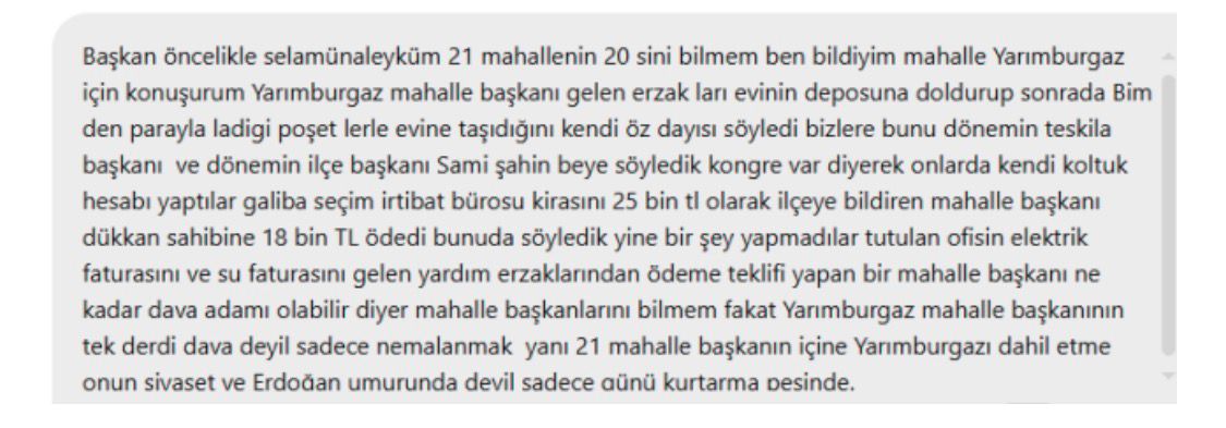 “21 mahalle başkanının hepsini bilemeyiz ama Yarımburgaz’ı bu listeye katmayın. Tek derdi nemalanmak, günü kurtarmak.”