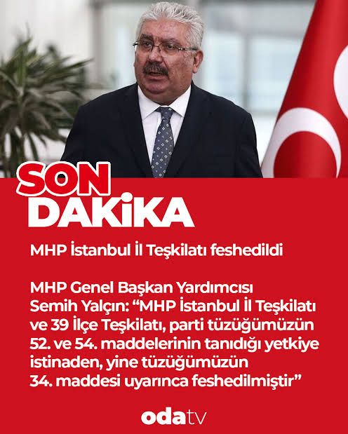 Milliyetçi Hareket Partisi’nde (MHP) İstanbul teşkilatına yönelik dikkat çeken bir gelişme yaşandı. MHP Genel Başkan Yardımcısı Feti Yıldız’ın yaptığı açıklamada, İstanbul il yönetimi ile ilçe teşkilatlarının feshedildiğinin duyurulduğu iddiası siyasi kulislerde geniş yankı uyandırdı.