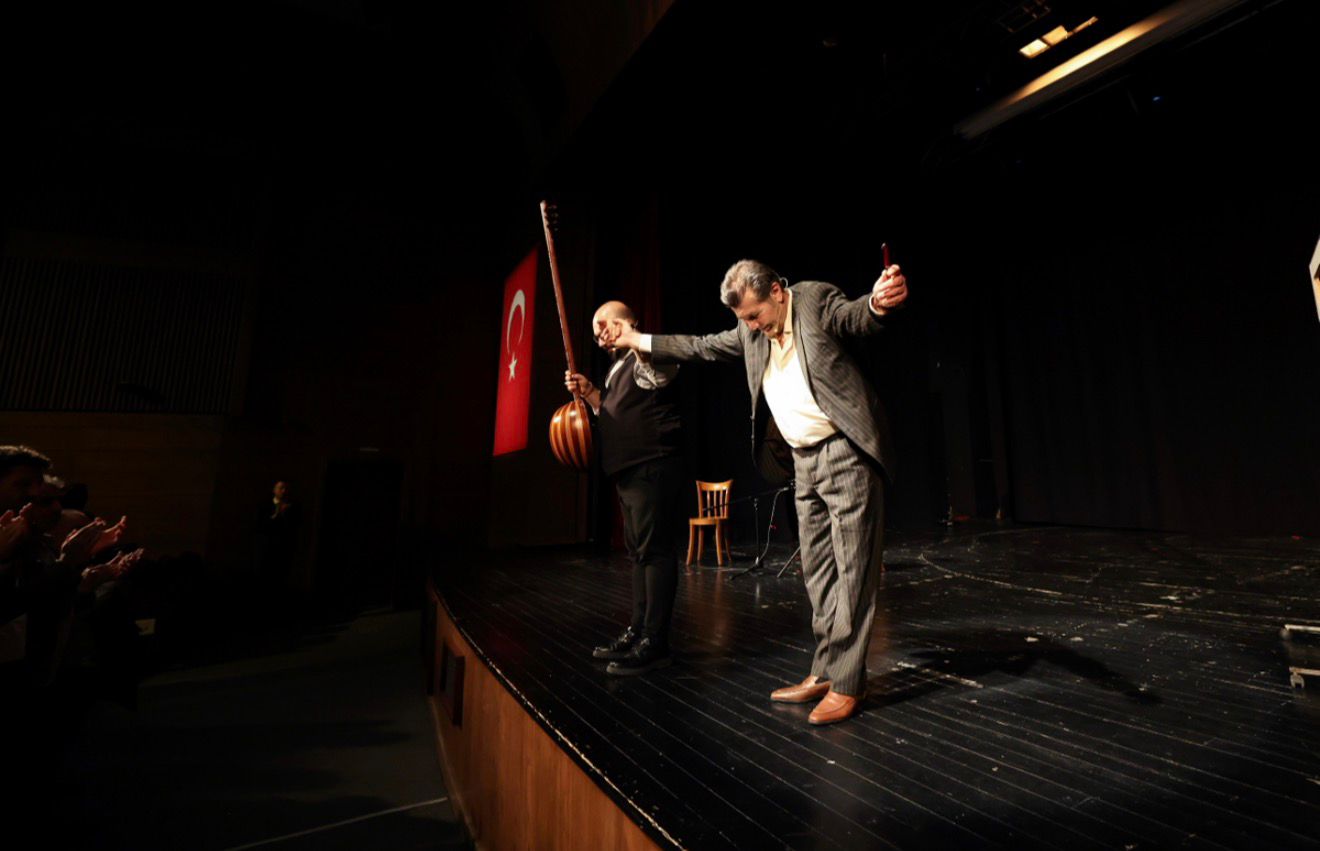 Orhan Veli’nin hayatından kesitler sunan oyunda, Hakkı Ergök’e sahnede tanbur sanatçısı Hakan Dedeler eşlik etti. Şairin dizeleri, canlı müzikle harmanlanarak izleyicilere duygusal ve etkileyici bir atmosfer sundu.