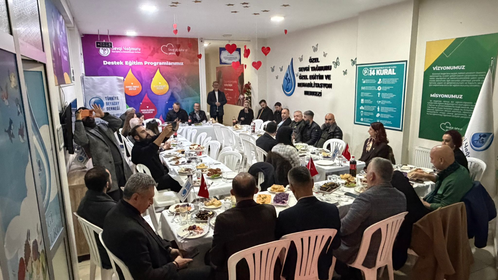 Küçükçekmece’de faaliyet gösteren Türkiye Beyazay Derneği Küçükçekmece Şubesi, özel gereksinimli bireylere yönelik farkındalık oluşturmak amacıyla anlamlı bir organizasyona imza attı. Dün akşam Küçükçekmece Sultan Murat Mahallesi İnönü Caddesi üzerinde bulunan Özel Sevgi Yağmuru Özel Eğitim ve Rehabilitasyon Merkezi’nde düzenlenen yemek programında; dernek yöneticileri, kamu temsilcileri ve davetliler bir araya geldi. Programda samimi bir atmosfer hâkim olurken, katılımcılara Türkiye Beyazay Derneği kadın yöneticilerinin kendi elleriyle hazırladığı yemekler ikram edildi.