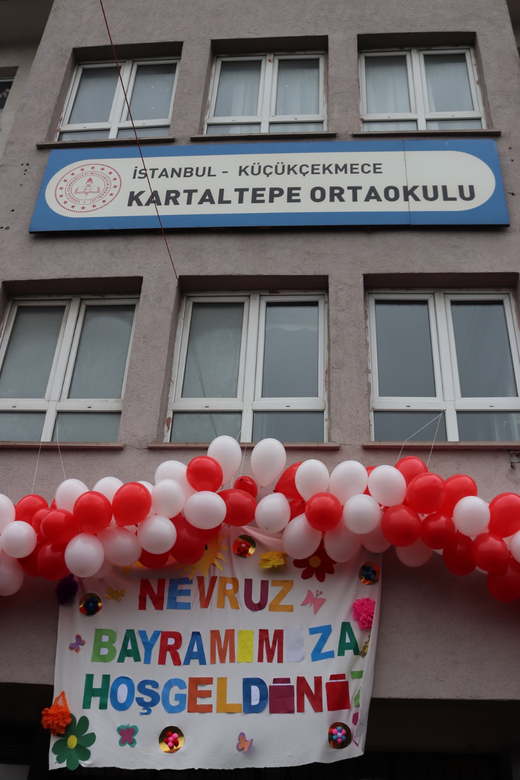 Küçükçekmece Kartaltepe Ortaokulu’nda düzenlenen “Türk Günü Nevruz Bayramı” etkinliği, renkli görüntülere sahne oldu. Öğrenciler, kadim Türk kültürünü yansıtan etkinliklerle hem eğlendi hem de milli değerleri yakından tanıma fırsatı buldu. Programa Küçükçekmece İlçe Milli Eğitim Müdürü Emin Çıkrıkçı, Şube Müdürü Osman Nuri Özgenç, Tevfikbey Mahallesi Muhtarı Nesrin İnan, Mustafa Kemal Paşa Ortaokulu Müdürü Fatih Sönmez’in yanı sıra öğretmenler, veliler ve çok sayıda öğrenci katıldı.