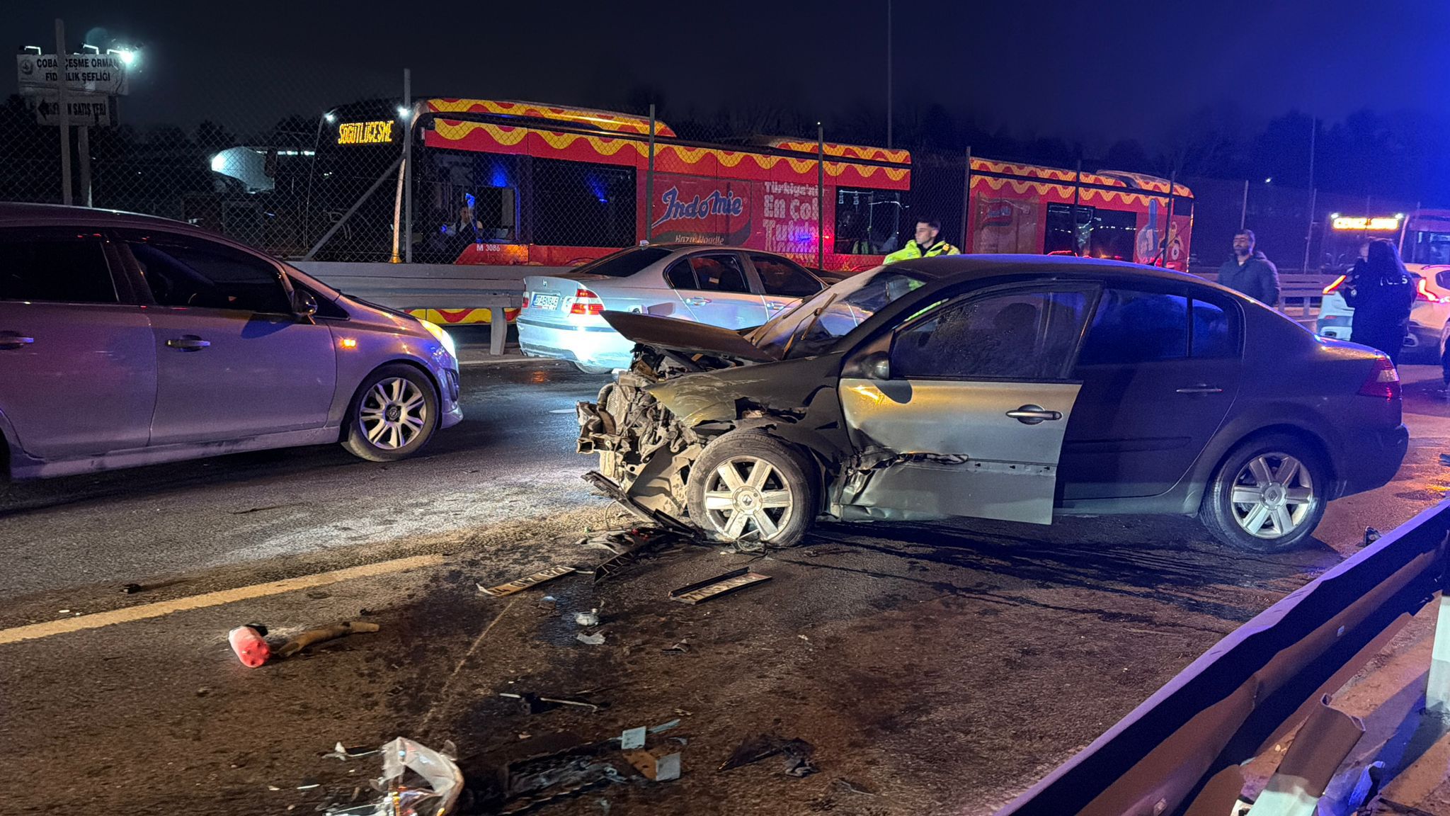 Küçükçekmece’de D100 Karayolu Edirne istikametinde meydana gelen zincirleme trafik kazasında 1 kişi yaralandı. İddiaya göre, 34 GNZ 827 plakalı otomobilin sürücüsü seyir halindeyken makas atarak ilerlemeye başladı. Kontrolünü kaybeden sürücü, önce 3 araca çarptı, ardından bariyerlere vurup durabildi.