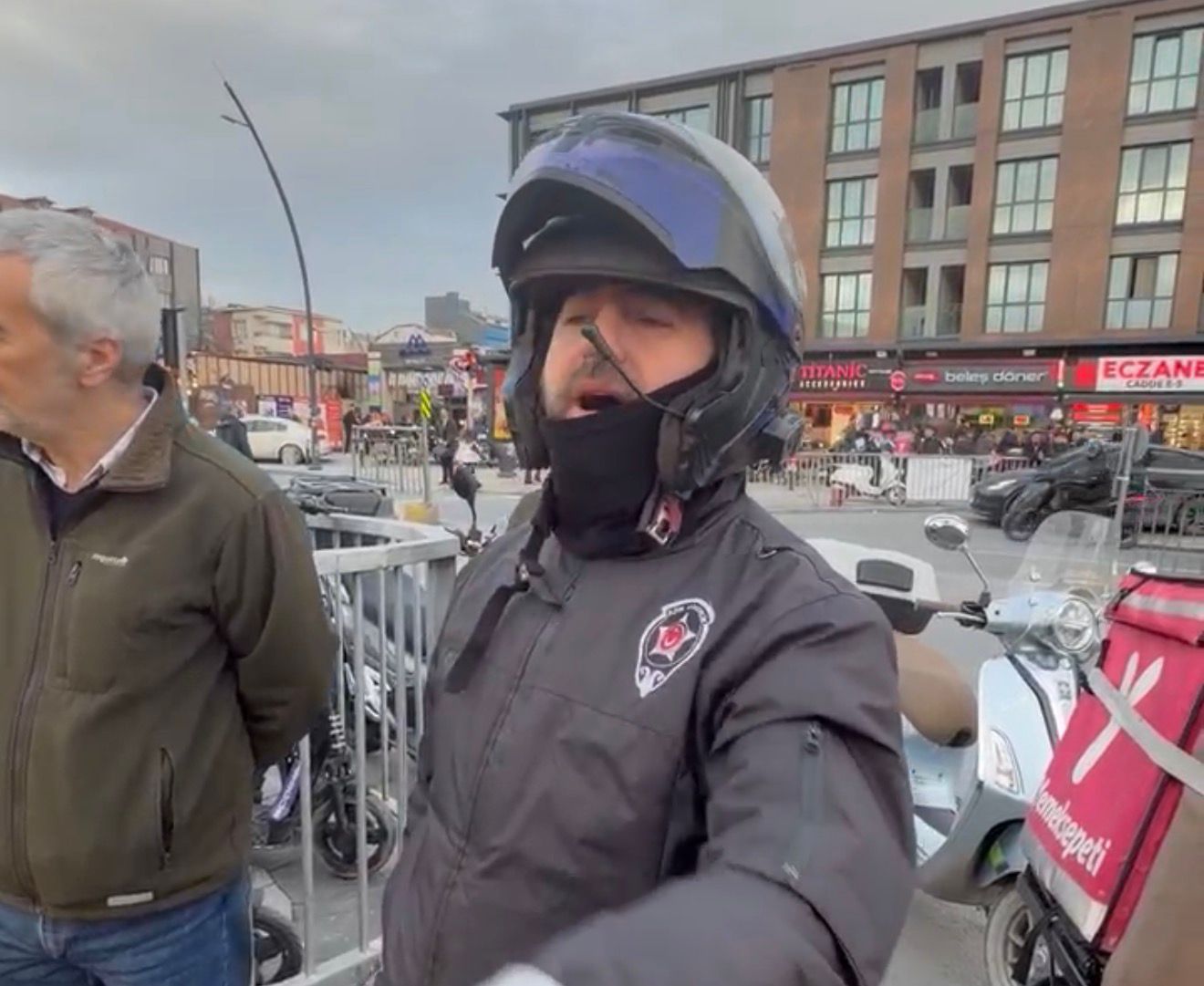 Tartışmanın büyümesiyle bazı Sol Parti üyelerinin kuryenin üzerine yürüdüğü, sinkaflı ifadeler kullanarak tehdit ve hakaretlerde bulunduğu öne sürüldü. O sırada bölgeden geçmekte olan Yunus polis ekipleri, tartışmaya müdahale ederek olayın büyümesini önledi.