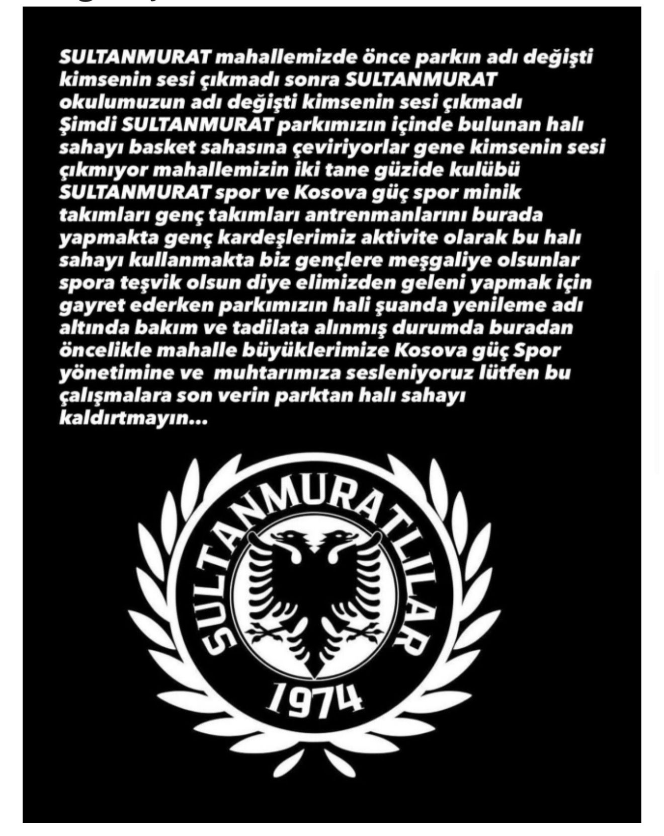 Mahalle sakinleri Başta Küçükçekmece Belediye Başkanı Kemal ÇEBİ'ye ve İlçe Meclisi’ni göreve çağırdıİstanbul’un Küçükçekmece ilçesine bağlı Sultanmurat Mahallesi’nde spor yapan gençler için mevcut futbol sahasının yetersiz kaldığı gündeme geldi. Mahallede faaliyet gösteren futbol kulüplerinin altyapılarında antrenman yapan çocukların, mevcut alanın fiziki şartları nedeniyle verimli çalışma imkânı bulamadığı ifade ediliyor.