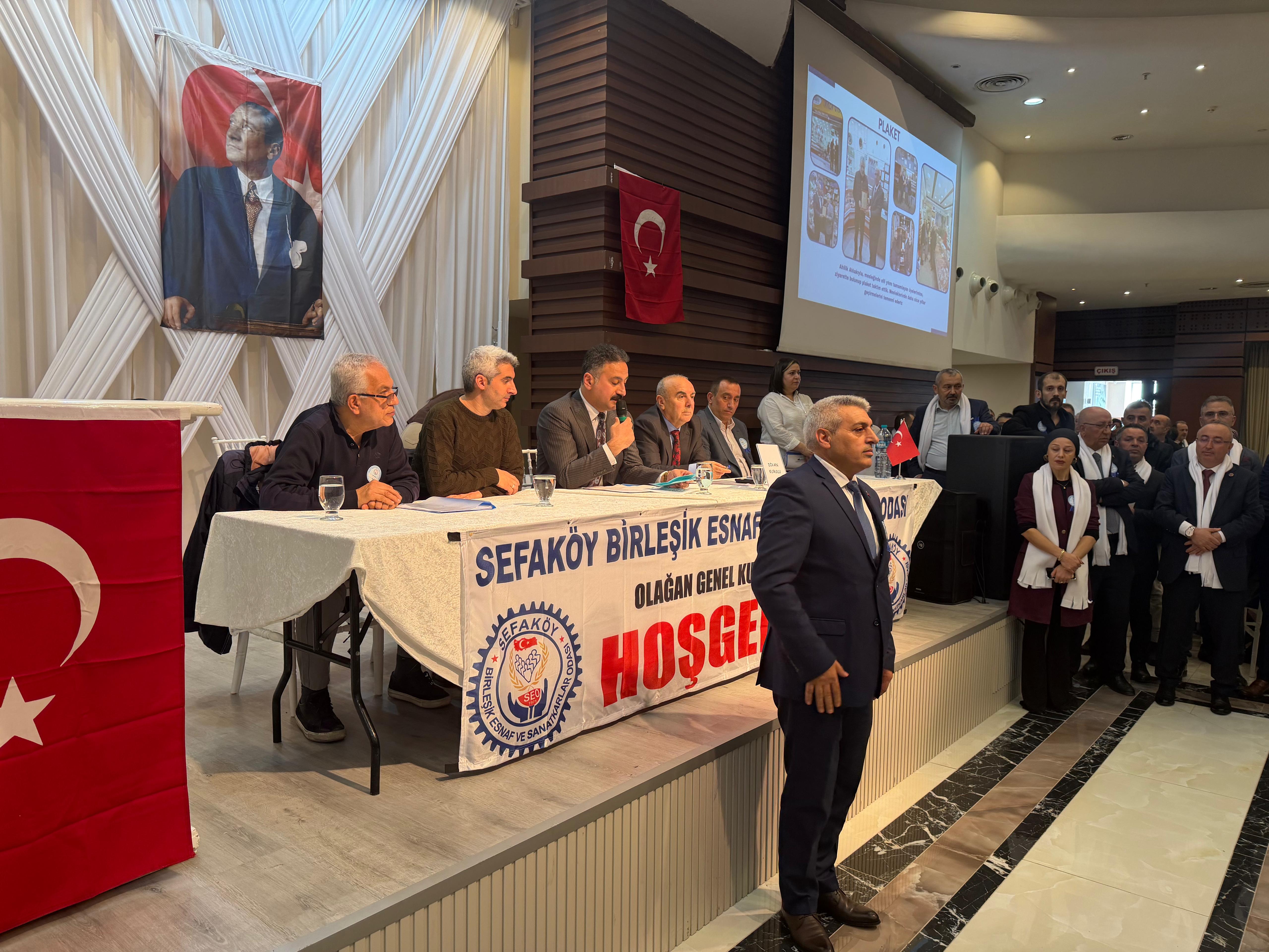 Sefaköy Birleşik Esnaf ve Sanatkârlar Odası’nda Seçimi Sait Yüksek Kazandı Küçükçekmece’de esnaf odası seçim heyecanı yaşandı. Sefaköy Birleşik Esnaf ve Sanatkârlar Odası’nın olağan genel kurulu, bugün Küçükçekmece Belediyesi Nikâh Sarayı’nda gerçekleştirildi. Saat 13.00’te başlayan genel kurul öncesinde, saat 10.00’da üyelere kahvaltı programı düzenlendi. Kahvaltının ardından yapılan divan seçimi sonrasında divan üyeleri yerini aldı. Genel kurul, saygı duruşu ve İstiklal Marşı’nın okunmasıyla başladı.